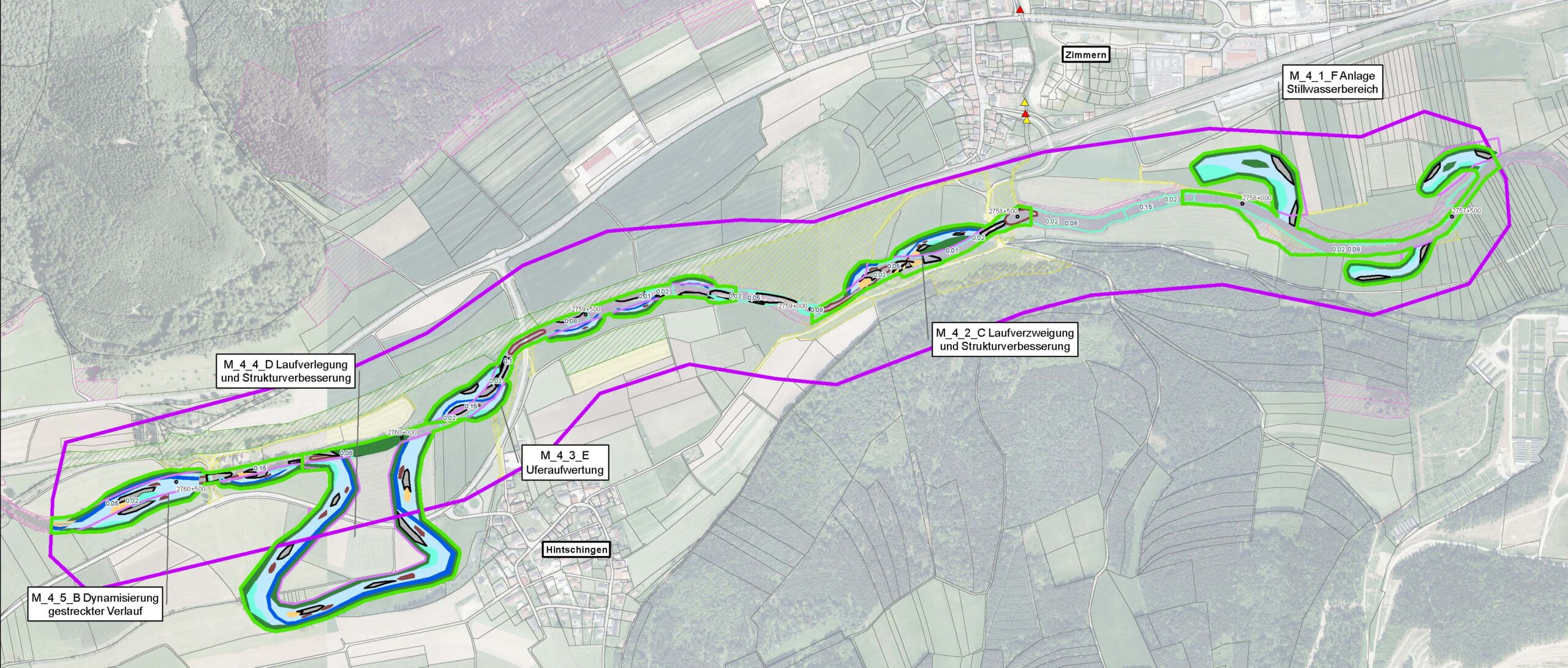 - Darstellung der Planungsbereiche mit Maßnahmen (M 1: 1000) Aufnahme in feature classes der FGDB, Ideenskizzen und Schnitte im Format dxf